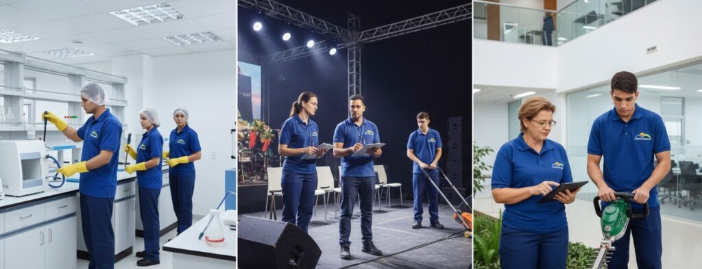 Serviços completos de limpeza predial, industrial, comercial e hospitalar. Utilizamos equipamentos modernos e produtos de alta qualidade para manter seu ambiente sempre impecável, seguro e em conformidade com as normas sanitárias vigentes.